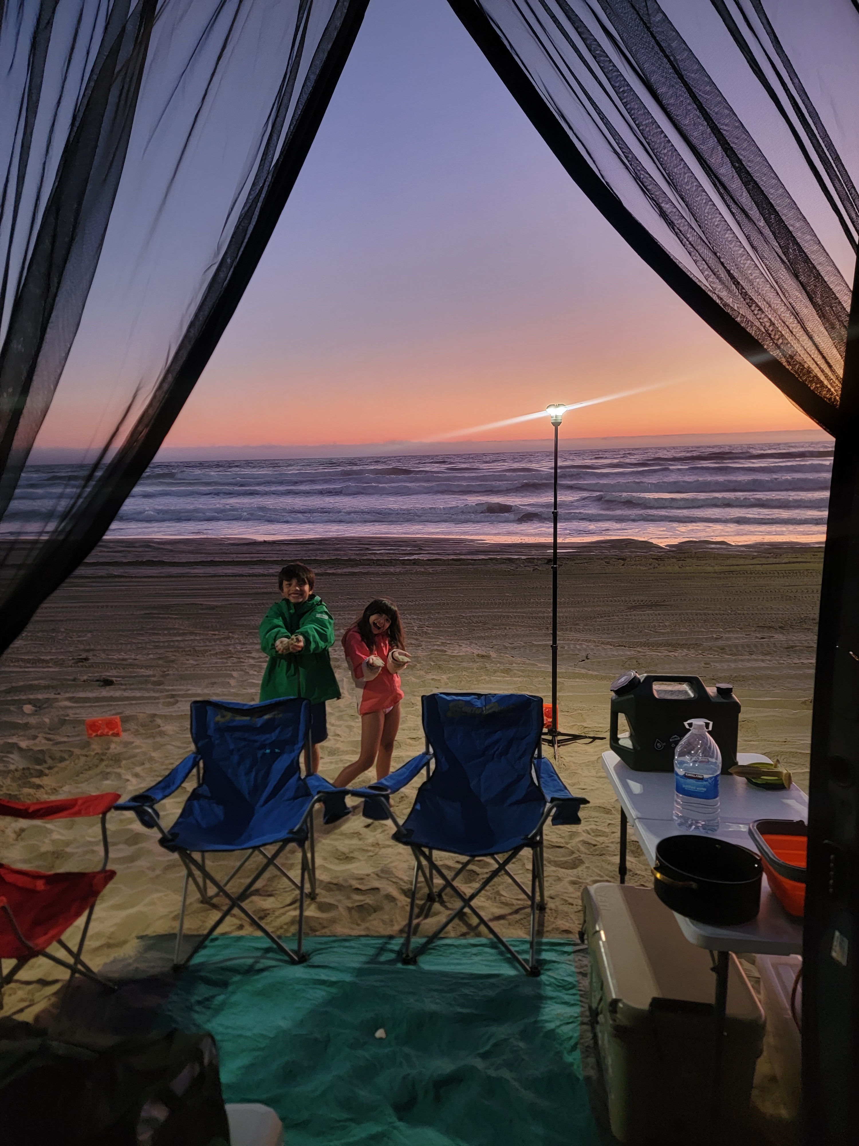 The day we camped was cloudy and cold, and we didn’t think much of it. Spoiler alert: we got sunburned anyway — badly. Even in overcast beach weather, UV rays are no joke, so don’t forget your sunscreen.